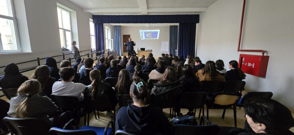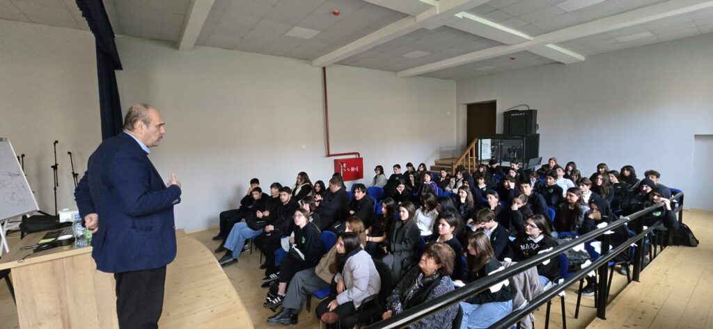 ბატონმა თეიმურაზი სკოლის სააქტო დარბაზში საბაზო და საშუალო საფეხურის მოსწავლეებს შეხვდა და წაიკითხა ლექცია თემაზე: ,,ფიზიკა ყველასათვის“.